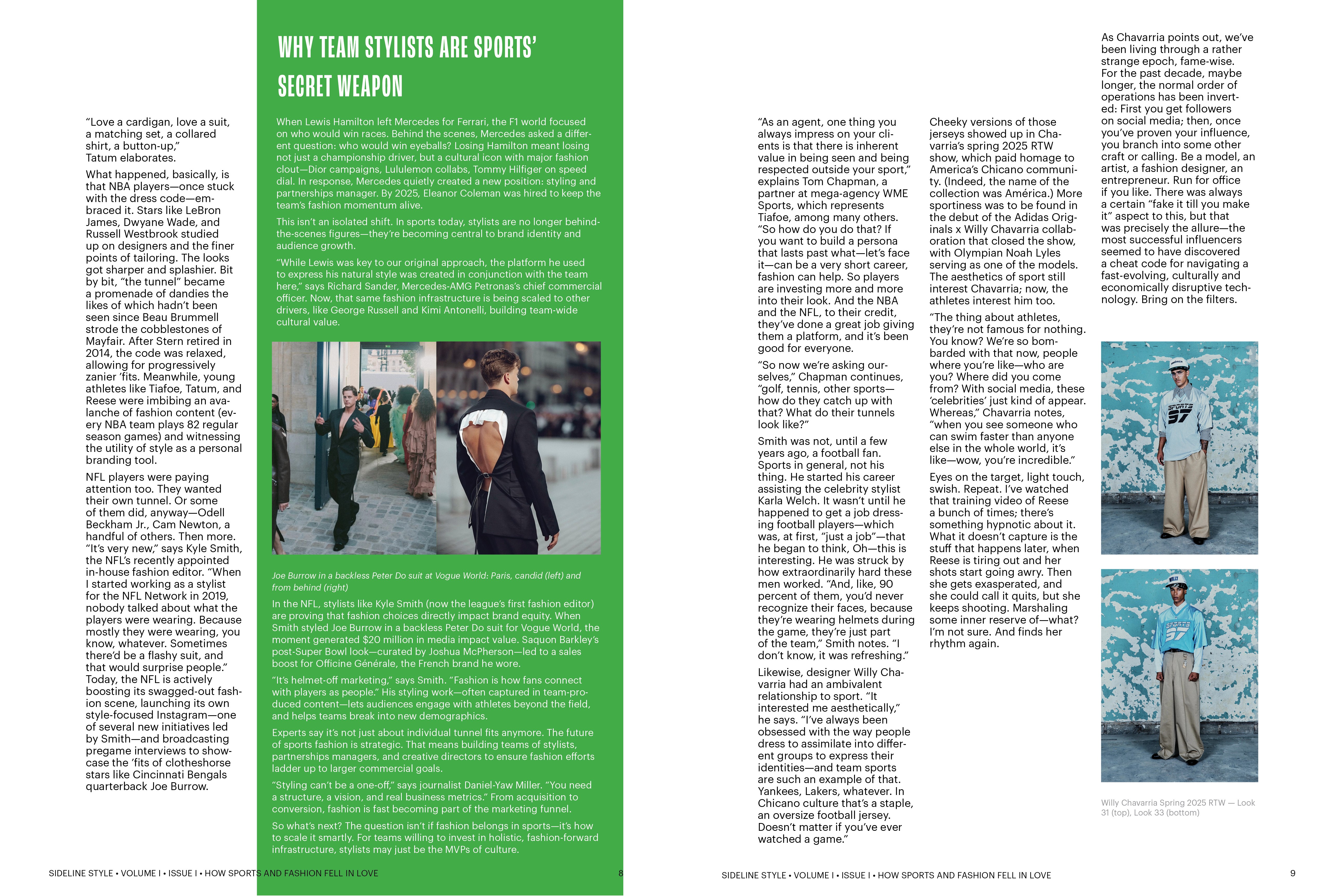 Sideline Style blends editorial storytelling with trend analysis, education, and cultural commentary. With an active online presence for real-time updates and insight between issues, the magazine serves as a stylish playbook for anyone navigating the fast-growing world where fashion meets the field.